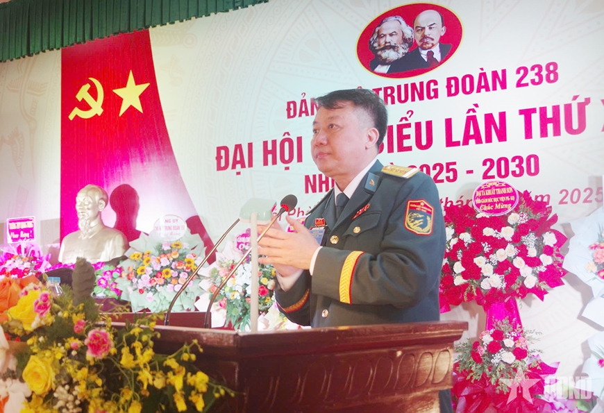 | Đại tá Nguyễn Ngọc Trường, Phó chính ủy Sư đoàn 363, Quân chủng Phòng không-Không quân đánh giá cao tinh thần đoàn kết và kết quả lãnh đạo của Đảng bộ Trung đoàn 238 nhiệm kỳ 2020-2025. |