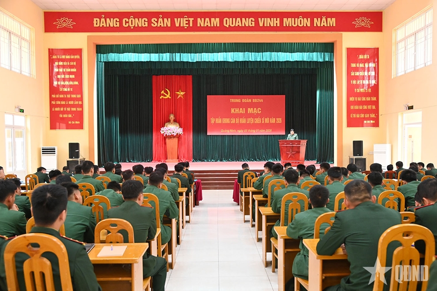 Phát biểu khai mạc, Thượng tá Đinh Kiên, Trung đoàn trưởng Trung đoàn 244 (Bộ CHQS tỉnh Quảng Ninh) yêu cầu Ban tổ chức làm tốt công tác chuẩn bị, bảo đảm đầy đủ nội dung, chương trình, cơ sở vật chất; duy trì nghiêm chế độ học tập, sinh hoạt, theo dõi, đánh giá kết quả từng cán bộ, bảo đảm an toàn tuyệt đối.