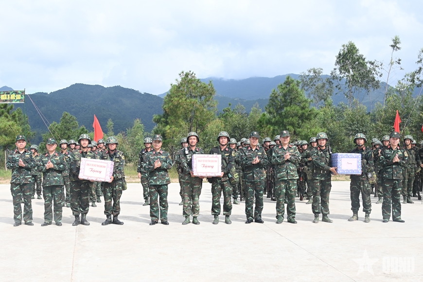 Nhân dịp này, Bộ CHQS tỉnh Quảng Ninh và Trung đoàn 244 đã tặng quà động viên các cán bộ, chiến sĩ đã hoàn thành tốt nội dung diễn tập chiến thuật vòng tổng hợp có bắn đạn hơi năm 2025.