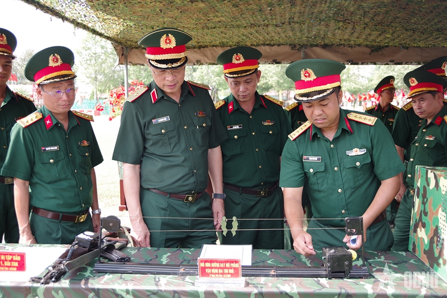 Đoàn công tác Bộ Tổng Tham mưu kiểm tra mô hình học cụ, sáng kiến cải tiến kỹ thuật phục vụ huấn luyện tại Trung đoàn 3, Sư đoàn 330, Quân khu 9.
