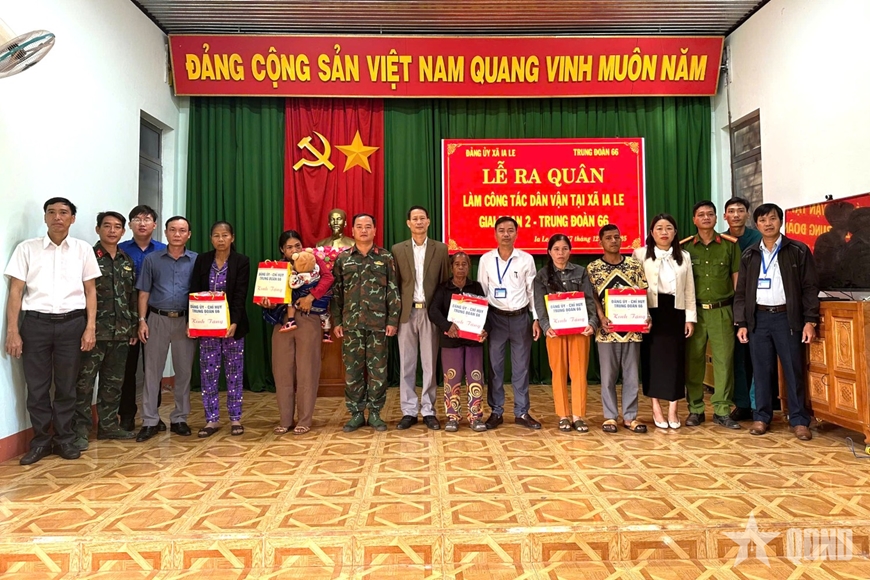 Phối hợp hỗ trợ nhân dân thôn Kênh Săn, Kênh Hmek, Puối Lốp, Phú Hòa (xã Ia Le) đào mương thoát nước kết hợp củng cố hơn 3km đường liên thôn; làm hơn 200m2 hàng rào; củng cố cảnh quan, khuôn viên 2 hội trường thôn, 3 điểm trường mẫu giáo; vệ sinh, phát quang khu vực sinh hoạt cộng đồng. Đơn vị cũng thăm, tặng quà các gia đình chính sách; cắt tóc miễn phí, tư vấn sức khỏe cho người dân, giao lưu thể thao, văn nghệ, góp phần tạo sự đoàn kết gắn bó quân dân thêm bền chặt. Ngoài ra, cán bộ, chiến sĩ còn giúp nhân dân thôn 2B, xã Ea H’leo, tỉnh Đắk Lắk đổ 150m đường bê tông.