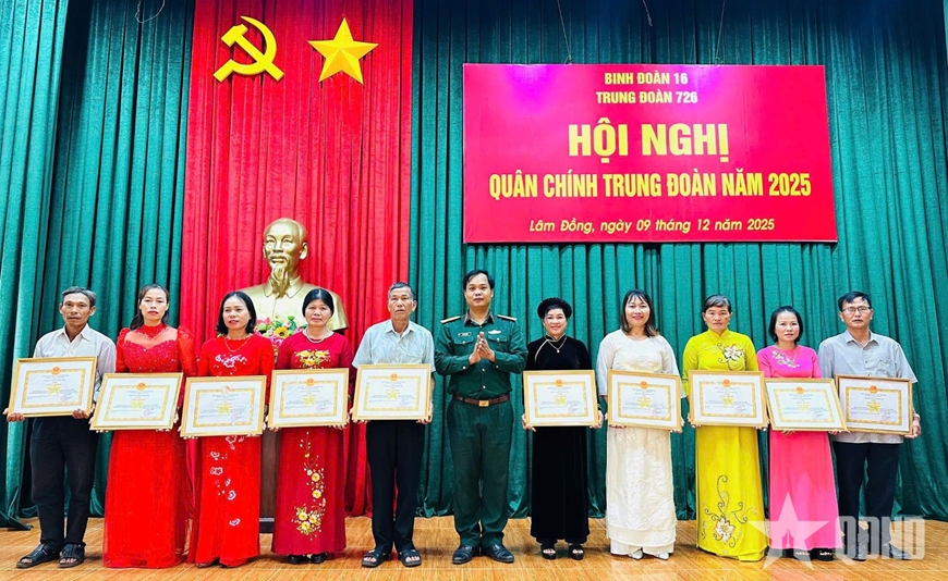 Nhân dịp này, Trung đoàn 726 đã khen thưởng các tập thể và cá nhân có thành tích xuất sắc trong Phong trào Thi đua Quyết thắng năm 2025.