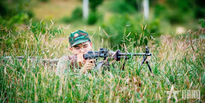| Xạ thủ trung liên tiêu diệt mục tiêu trong diễn tập. |