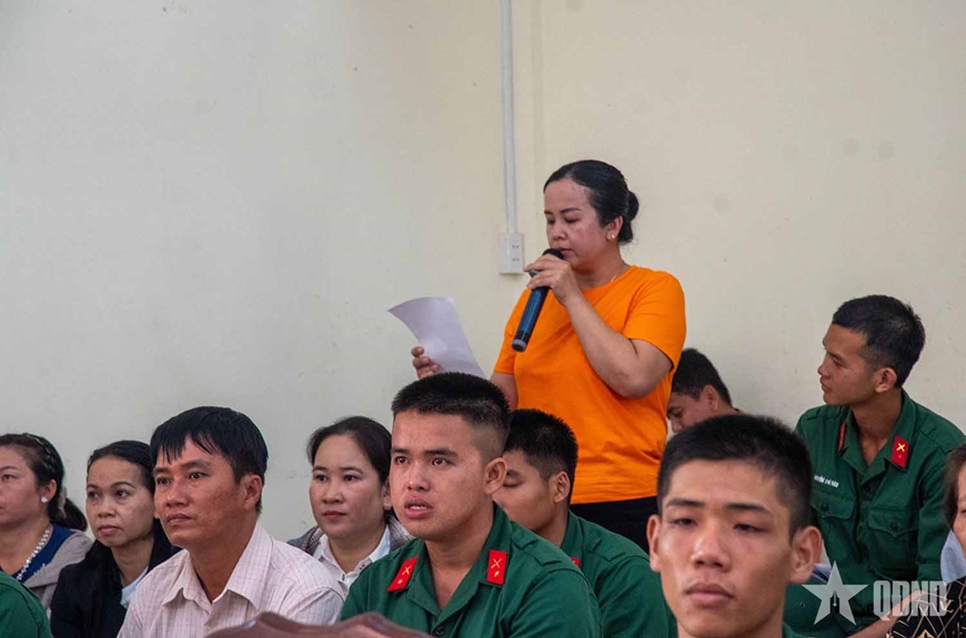 Đại diện cấp ủy, chính quyền địa phương và gia đình chiến sĩ mới đã trao đổi, bày tỏ sự tin tưởng vào công tác quản lý, huấn luyện của đơn vị; đồng thời mong muốn Trung đoàn tiếp tục quan tâm, giáo dục, rèn luyện để các chiến sĩ trưởng thành toàn diện.