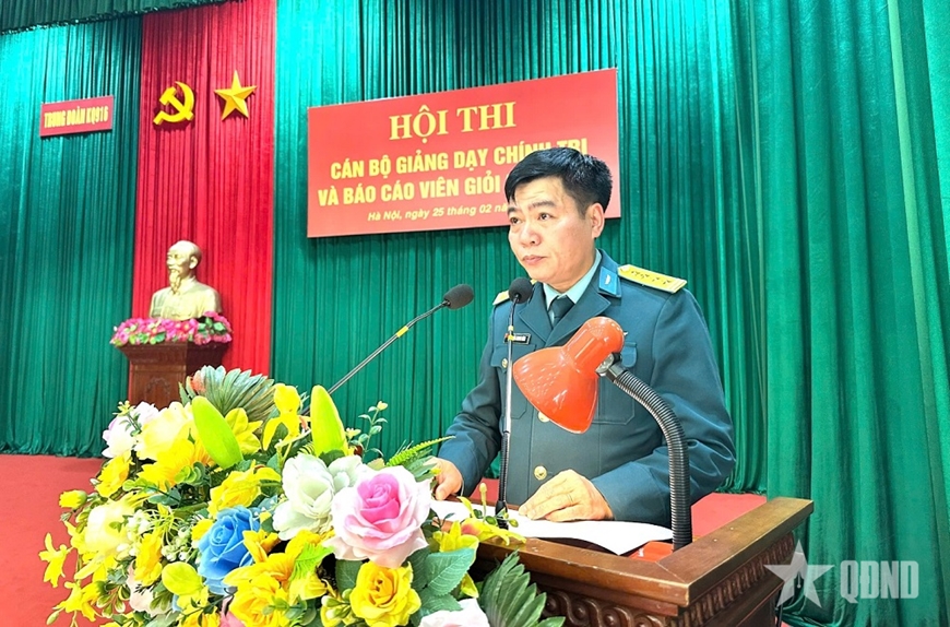 Phát biểu khai mạc hội thi, Đại tá Nguyễn Thanh Bình, Chính ủy Trung đoàn, Trưởng ban Tổ chức hội thi nhấn mạnh: Hội thi nhằm đánh giá chất lượng cán bộ giảng dạy chính trị và hoạt động báo cáo viên, tuyên truyền miệng ở các cơ quan, đơn vị trong những năm qua; thông qua Hội thi có kế hoạch và biện pháp bồi dưỡng trình độ, năng lực, kỹ năng cho cán bộ giảng dạy chính trị và đội ngũ báo cáo viên, góp phần nâng cao chất lượng, hiệu quả công tác giảng dạy chính trị tại đơn vị và hoạt động báo cáo viên, tuyên truyền miệng trong toàn Trung đoàn. Đồng thời, là dịp để cán bộ giảng dạy chính trị và đội ngũ báo cáo viên trao đổi, học tập kinh nghiệm, củng cố kiến thức toàn diện, trình độ sư phạm, phát huy lòng say mê nghề nghiệp, đáp ứng yêu cầu nhiệm vụ trong tình hình mới.