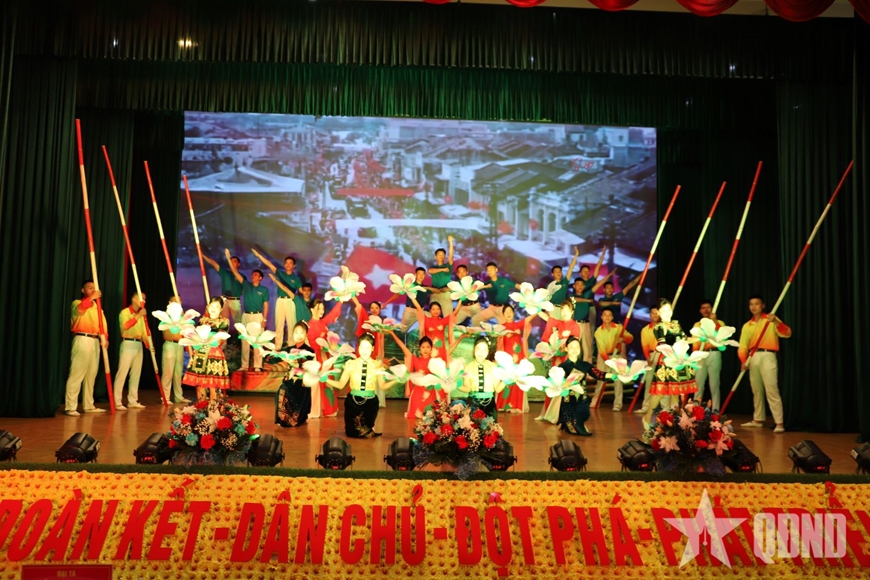 | Đại tá Khổng Đình Tám động viên đoàn viên ưu tú. |