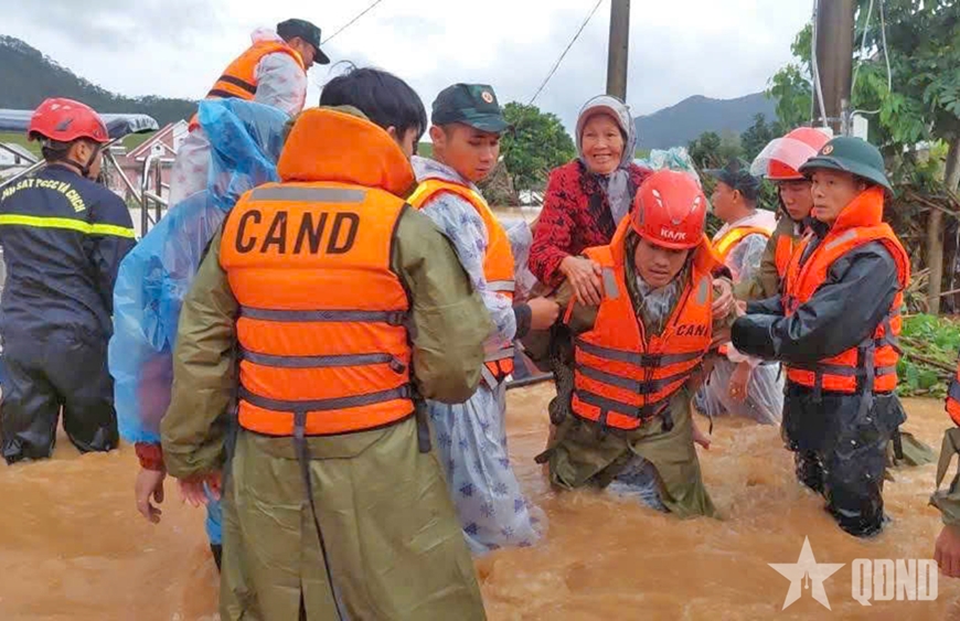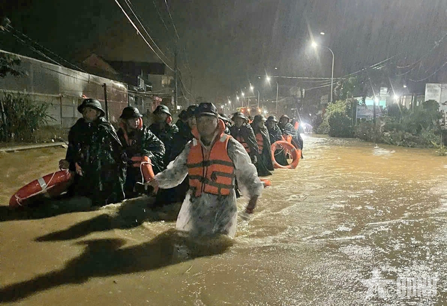 | Các lực lượng chức năng cùng phối hợp chặt chẽ để di dời kịp thời người dân ra khỏi khu vực nguy hiểm. |