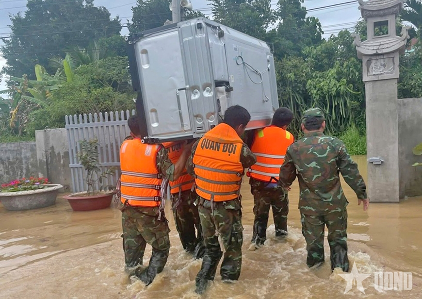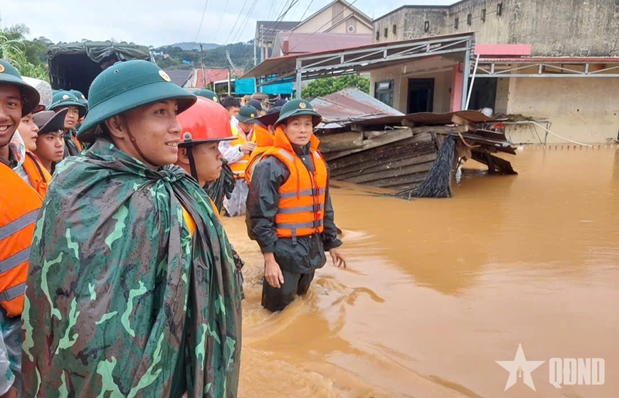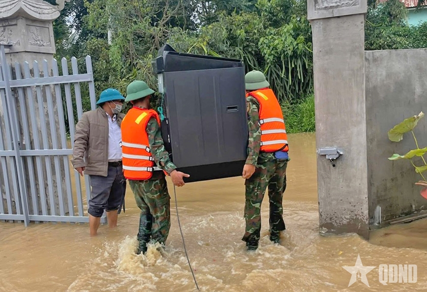 Nước lũ dâng cao, chảy xiết, làm ngập hàng trăm ngôi nhà, sạt lở đường giao thông… Cán bộ, chiến sĩ Trung đoàn 994B phối hợp với các lực lượng chức năng cùng tạo nên một “bức tường thép” di dời người, tài sản đến vị trí an toàn, tổ chức các phương án cứu nạn, cứu hộ… và kịp thời vận chuyển nhu yếu phẩm đến người dân.