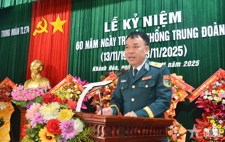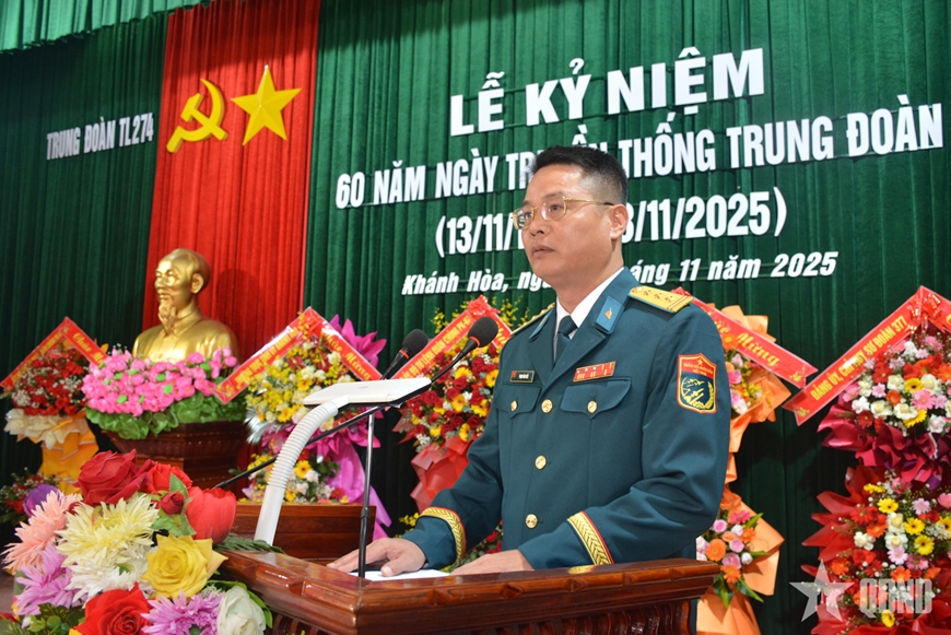 Phát biểu chỉ đạo, Thiếu tướng Vũ Đại Dương biểu dương những thành tích của cán bộ, chiến sĩ Trung đoàn Tên lửa 274 trong 60 năm qua.