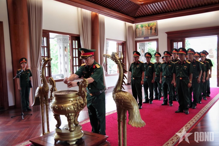 Thượng tá Hồ Ngọc Duy, Phó bí thư Đảng ủy, Chỉ huy trưởng Trung tâm 386 và đoàn cán bộ Trung tâm 386 dâng hương Chủ tịch Hồ Chí Minh và Đại tướng Võ Nguyên Giáp tại Bảo tàng Hồ Chí Minh - Chi nhánh Quân khu 5.