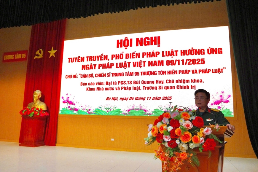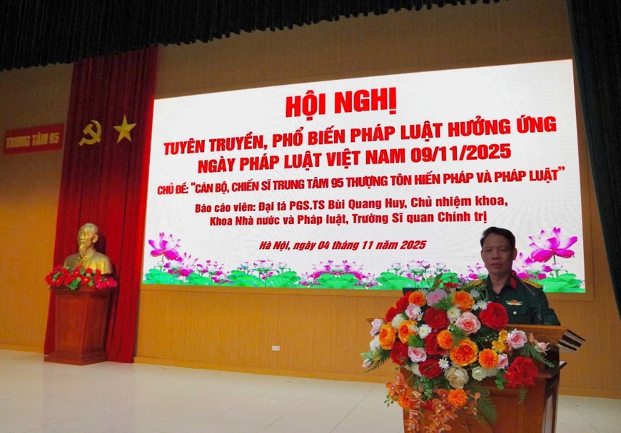 Phát biểu tại hội nghị, Thượng tá Nguyễn Đức Chuyền, Bí thư Đảng ủy, Chính trị viên Trung tâm 95 nhấn mạnh: Công tác tuyên truyền, phổ biến, giáo dục pháp luật là nội dung trọng tâm, có ý nghĩa lâu dài trong xây dựng chính quy, rèn luyện kỷ luật và nâng cao ý thức pháp luật cho bộ đội.