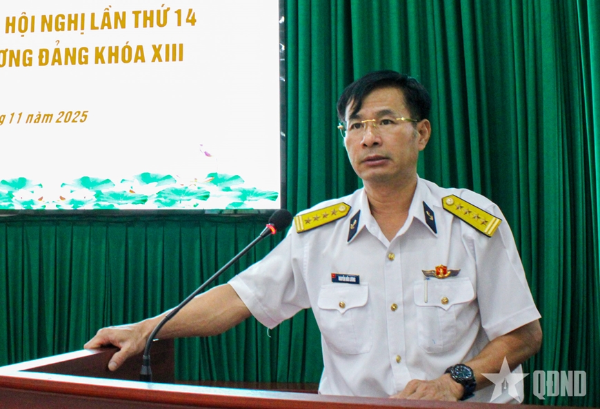 Sau phát động, Đại tá Nguyễn Hữu Lương, Bí thư Đảng ủy, Chính ủy Trung tâm Bảo đảm kỹ thuật Vùng 2 Hải quân đã trực tiếp thông báo nhanh những nội dung trọng tâm về kết quả Hội nghị lần thứ 14 Ban Chấp hành Trung ương Đảng khóa XIII.