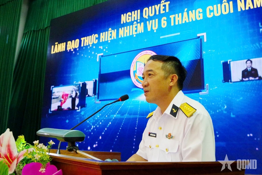 Đại tá Đỗ Minh, Phó tư lệnh Vùng 4 Hải quân phát biểu chỉ đạo.