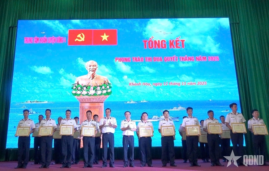 Dịp này, Trung tâm Huấn luyện Vùng 4 Hải quân tổng kết Phong trào Thi đua Quyết thắng năm 2025, khen thưởng 11 tập thể đạt danh hiệu “Đơn vị tiên tiến” và 23 cá nhân đạt danh hiệu “Chiến sĩ thi đua cơ sở” theo thẩm quyền.