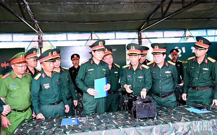 | Trung tướng Đào Tuấn Anh và các đại biểu tham quan sáng kiến của Trung đoàn 28. |