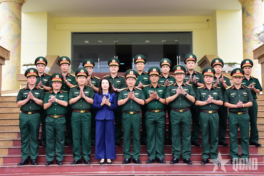 Trung tướng Đỗ Xuân Tụng và đồng chí Nguyễn Thị Hương cùng đoàn kiểm tra số 1. |