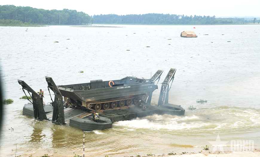 | Thực hành hội thao bảo đảm công binh vượt sông. |