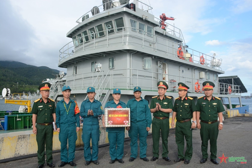 Nhân dịp này, Trung tướng Ngô Minh Tiến và Bộ tư lệnh Quân khu 5 đã tặng quà Hải đội dân quân thường trực (Bộ CHQS TP Đà Nẵng).