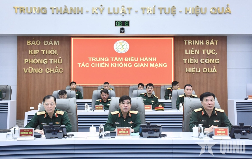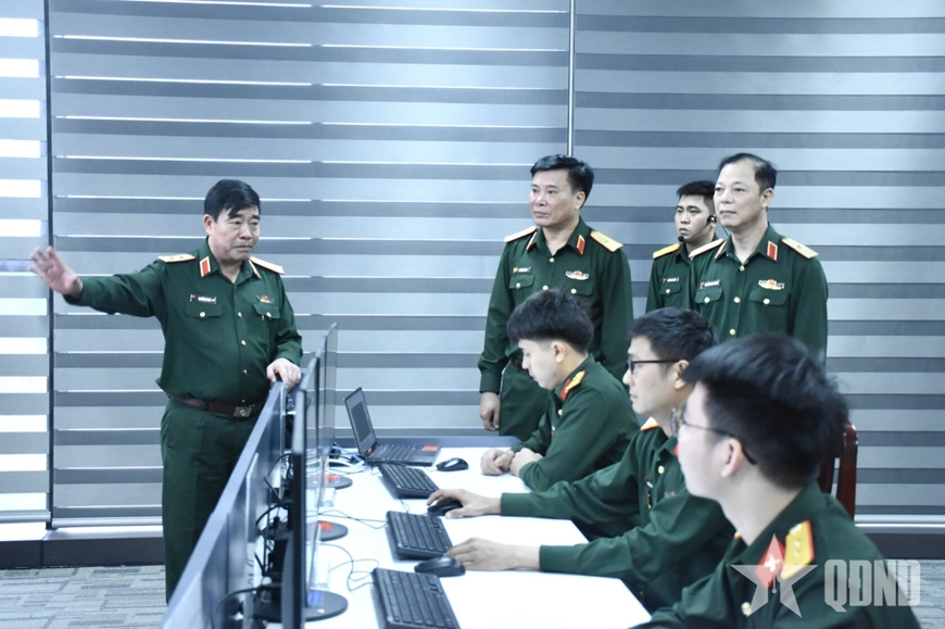 | Trung tướng Nguyễn Bá Lực, Phó tổng Tham mưu trưởng kiểm tra Trung tâm Điều hành tác chiến không gian mạng, Bộ tư lệnh 86. |