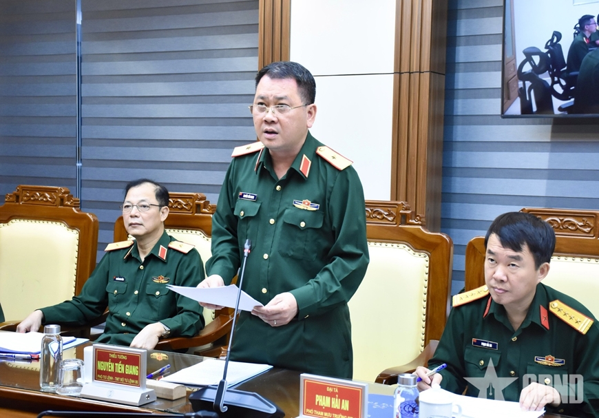 | Trung tướng Nguyễn Bá Lực, Phó tổng Tham mưu trưởng phát biểu kết luận tại buổi làm việc. |