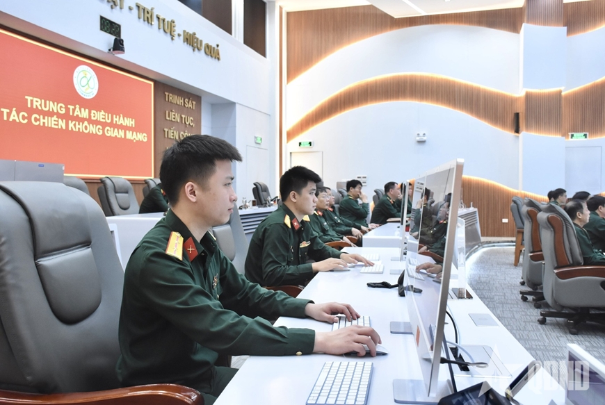 | Các cán bộ, nhân viên Trung tâm Điều hành tác chiến không gian mạng, Bộ tư lệnh 86 làm nhiệm vụ. |