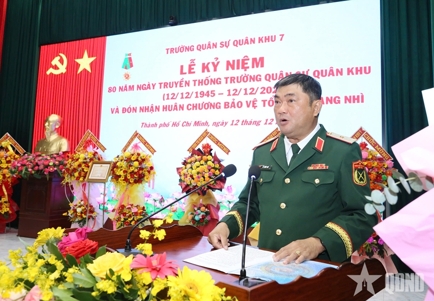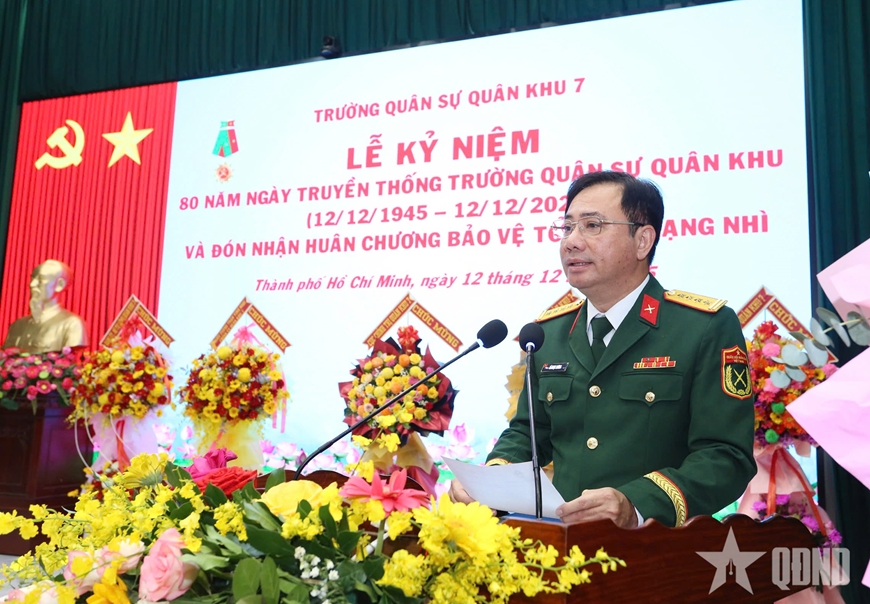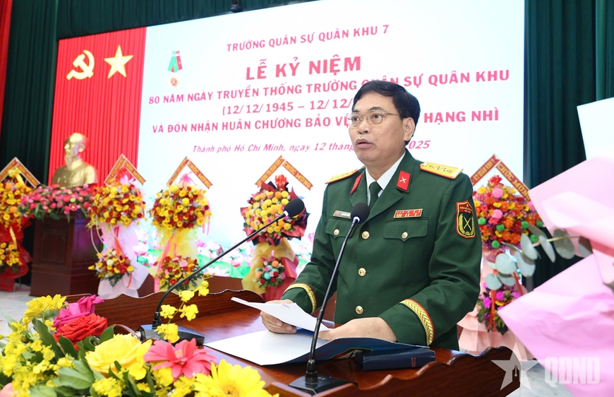 Trình bày diễn văn tại lễ kỷ niệm, Đại tá Bùi Đình Thành, Chính ủy Trường Quân sự Quân khu 7 nhấn mạnh: Nhà trường đã và đang phát huy truyền thống “Chủ động sáng tạo, bám sát thực tiễn, dạy tốt học tốt, liên tục trưởng thành”, viết tiếp nhiều thành tích tiêu biểu trong giáo dục và đào tạo, giữ vững môi trường văn hóa quân sự mẫu mực, tạo môi trường sư phạm “sáng, xanh, sạch, đẹp, chính quy”, đáp ứng yêu cầu nhiệm vụ tình hình mới. Nhà trường phấn đấu đến năm 2030 hoàn thành cơ bản 8 nhóm tiêu chí về xây dựng nhà trường thông minh theo quy định của Bộ Quốc phòng.