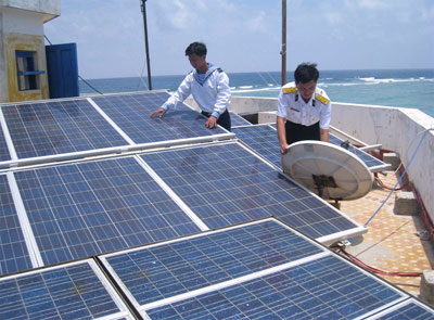 Hệ thống pin mặt trời và chảo thu tín hiệu vệ tinh trên đảo Đá Thị.