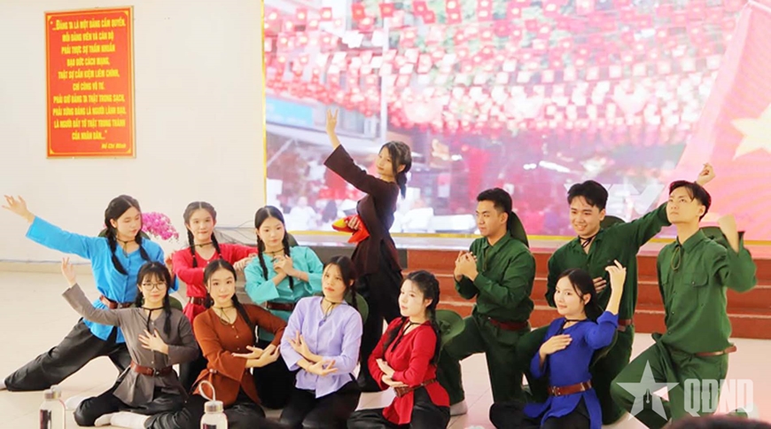| Tiết mục văn nghệ trong giao lưu tại đơn vị trong Nhà trường. |