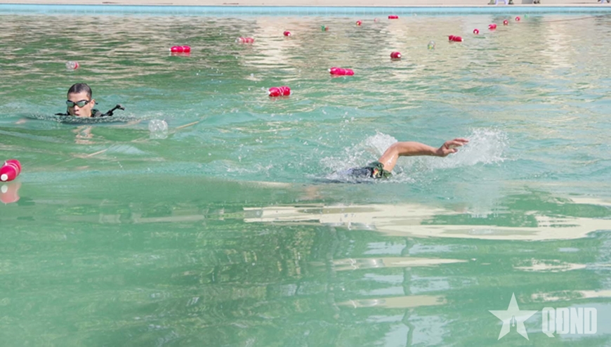 | Thi bơi vũ trang rèn luyện thể lực, nâng cao chất lượng đào tạo. |