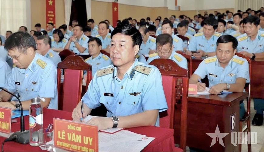 | Thiếu tướng Lê Văn Uy, Bí thư Đảng ủy, Chính ủy chủ trì tại điểm cầu Trường Sĩ quan Không quân. |