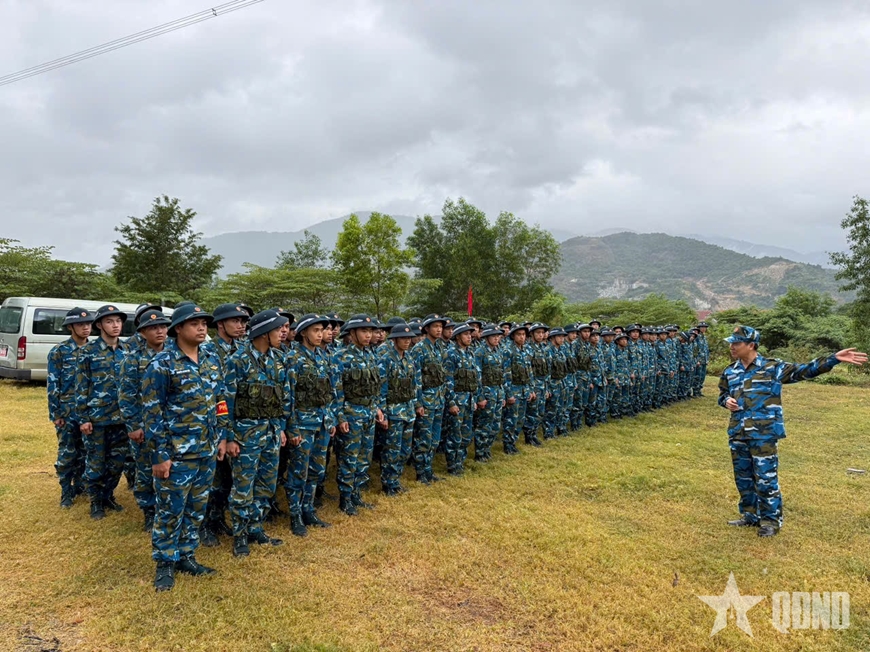 | Đại tá Thái Ngô Hưng, Chủ nhiệm Khoa Quân sự, Thể thao giao nhiệm vụ cho các thành phần tham gia kiểm tra thực hành 3 tiếng nổ. |