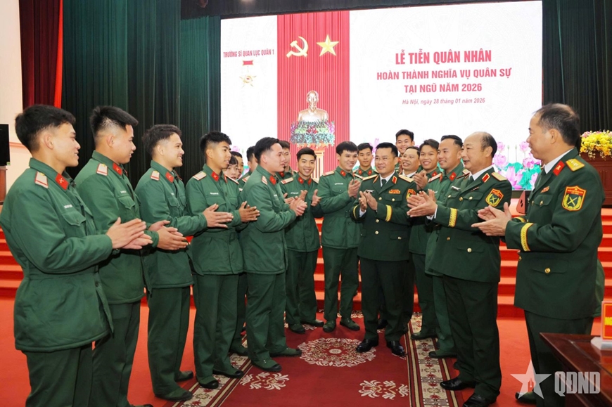 Sáng 28-1, Trường Sĩ quan Lục quân 1 tổ chức Lễ tiễn quân nhân hoàn thành nghĩa vụ quân sự tại ngũ năm 2026. Dự buổi lễ có Thiếu tướng Nguyễn Khắc Thơm, Phó hiệu trưởng nhà trường và Thiếu tướng Nguyễn Văn Tăng, Phó chính ủy nhà trường.