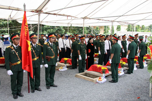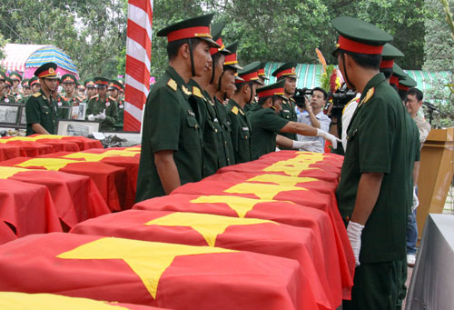 | Hài cốt của các liệt sĩ được đưa tới Đền thờ liệt sĩ |