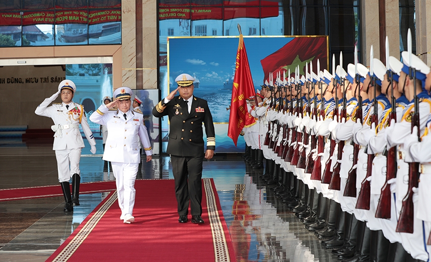 Tư lệnh Hải quân Campuchia duyệt Đội danh dự của Hải quân nhân dân Việt Nam.