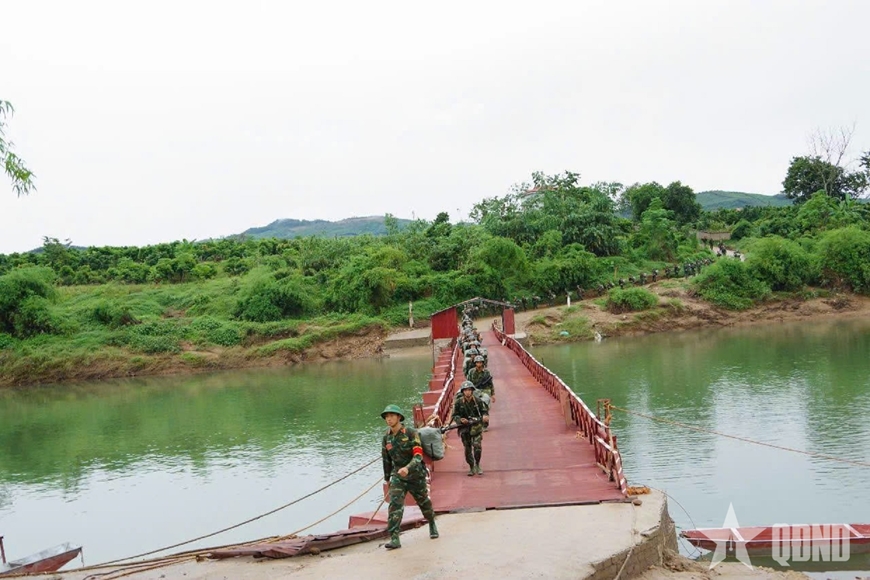 | Cán bộ, chiến sĩ Sư đoàn 325 hành quân trong diễn tập. |