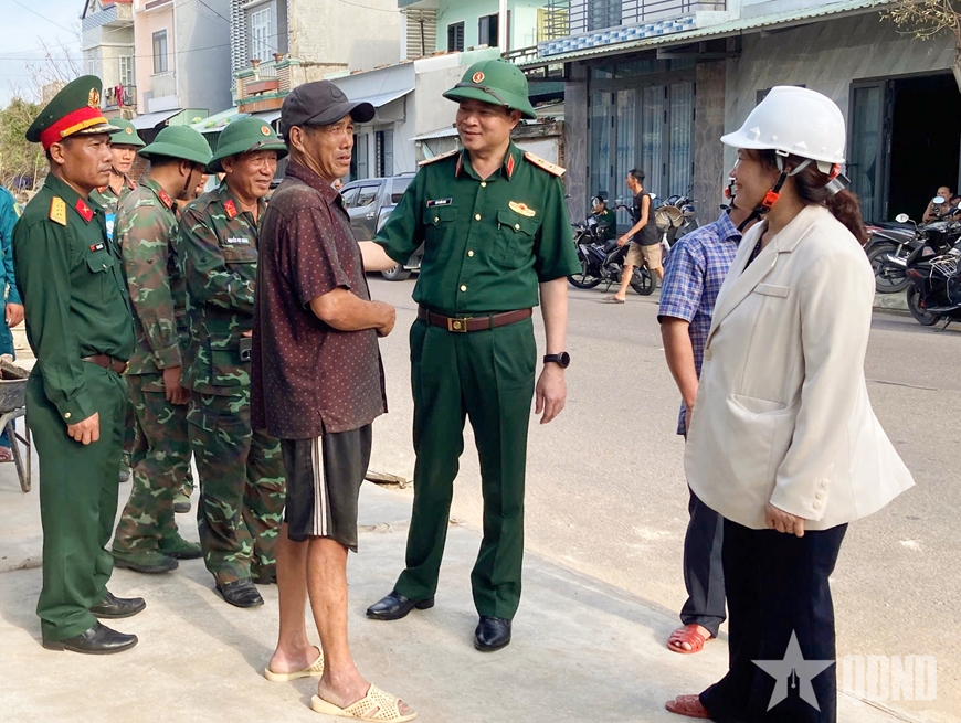 Dịp này, Trung tướng Đào Tuấn Anh đã thăm, động viên người dân và cán bộ, chiến sĩ Sư đoàn 31 đang giúp nhân dân khắc phục hậu quả bão số 13.