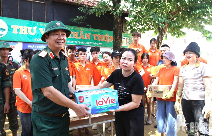 Sáng 10-10, Trung đoàn 12, Sư đoàn 3, Quân khu 1 đã điều động lực lượng, phương tiện đến điểm ngập lụt tại Trường Phổ thông dân tộc nội trú, THCS và THPT Hữu Lũng trên địa bàn xã Hữu Lũng (tỉnh Lạng Sơn) để tổng dọn vệ sinh môi trường, tu sửa đồ dùng học tập để sớm ổn định công tác dạy và học.