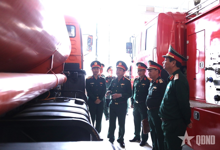 Đoàn công tác kiểm tra hệ thống nhà để xe của Tiểu đoàn Phòng hóa 23, Bộ Tham mưu Quân khu 1.