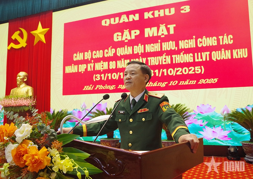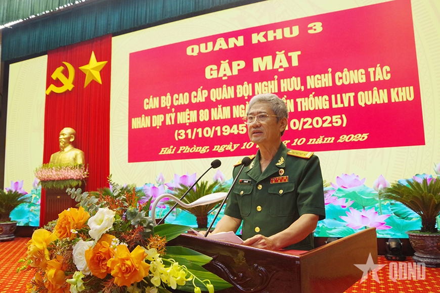 Phát biểu tại buổi gặp mặt, Thiếu tướng Lương Văn Kiểm ân cần thăm hỏi và bày tỏ sự tri ân sâu sắc đối với các đồng chí cán bộ cao cấp luôn quan tâm, đóng góp, chia sẻ nhiều kinh nghiệm quý báu trong lãnh đạo, chỉ đạo xây dựng LLVT Quân khu 3. Đồng chí Tư lệnh Quân khu 3 thông tin đến các đại biểu những nét chính về tình hình chính trị, kinh tế, xã hội của các địa phương trên địa bàn đóng quân, những kết quả nổi bật trong thực hiện nhiệm vụ quân sự, quốc phòng của LLVT Quân khu 3 trong thời gian qua và phương hướng, nhiệm vụ trong giai đoạn tới.
