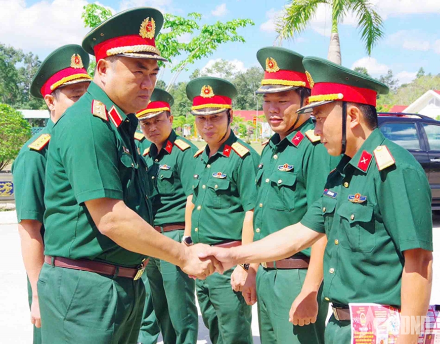 | Trung tướng Lê Xuân Thế thăm, động viên cán bộ Trung đoàn 271. |