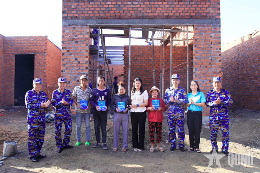 | Chuẩn Đô đốc Nguyễn Anh Tuấn, Tư lệnh Vùng 4 Hải quân tặng quà các hộ gia đình được bộ đội xây dựng nhà mới. |