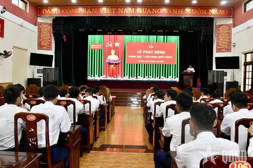 | Thượng tá Trần Quốc Dinh, Chủ nhiệm Chính trị, Bí thư Đoàn cơ sở phát động phong trào "3 Tiên phong quyết thắng". |