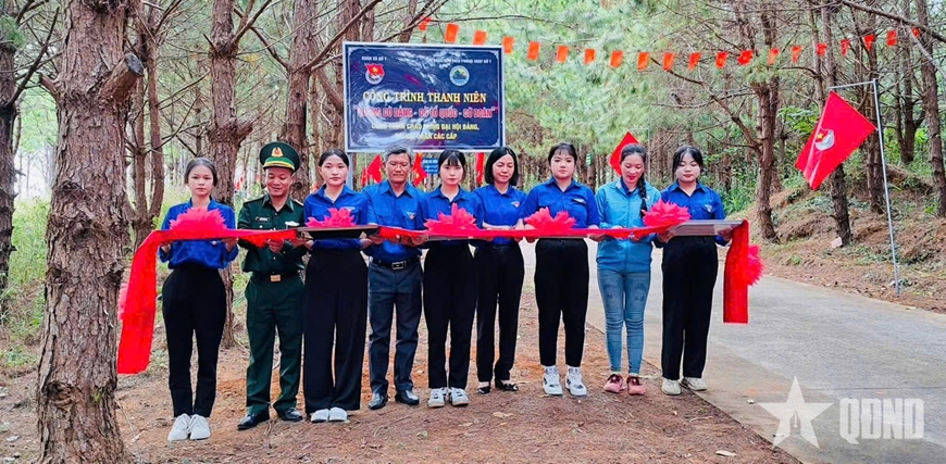 | Tuổi trẻ Bộ đội Biên phòng và địa phương khánh thành công trình thanh niên "Đường cờ Đảng - cờ Tổ quốc - cờ Đoàn". |