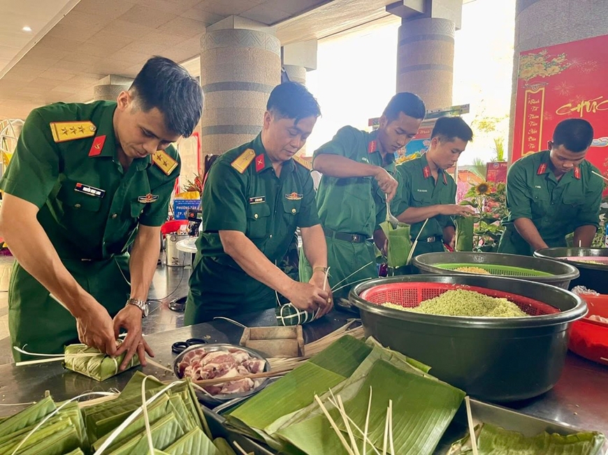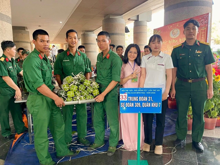 Thiết thực đón Tết Bính Ngọ 2026, chiều 10-2, Bộ Tham mưu Quân khu 7 đã tổ chức Hội thi gói, nấu bánh chưng.