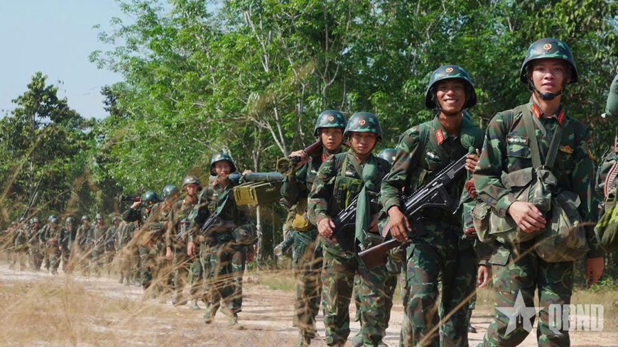 | Tuổi trẻ đơn vị rèn luyện hành quân mang vác nặng. |