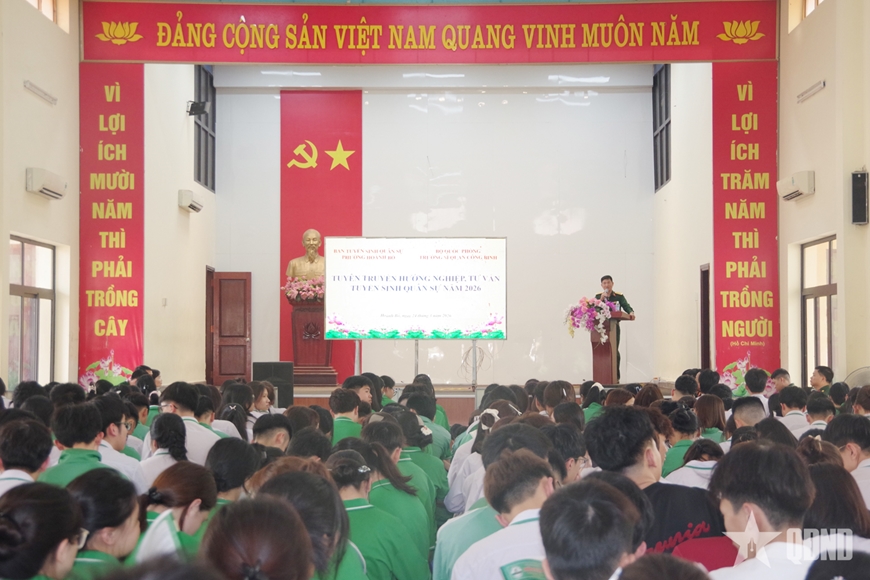 | Hội đồng tuyển sinh quân sự Trường Sĩ quan Công binh phối hợp tổ chức tuyên truyền, tư vấn tuyển sinh quân sự năm 2026 cho học sinh Trường THPT Hoành Bồ. |