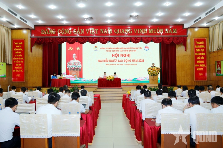 Ngày 23-1, tại TP Hồ Chí Minh, Tổng công ty Tân Cảng Sài Gòn đã tổ chức Hội nghị đại biểu người lao động năm 2026. Thiếu tướng Ngô Minh Thuấn, Tư lệnh Binh đoàn 20, Chủ tịch kiêm Tổng Giám đốc Tổng công ty và Thượng tá Nguyễn Phương Nam, Phó tư lệnh, Phó tổng giám đốc, Chủ tịch Công đoàn Tân Cảng Sài Gòn đồng chủ trì.