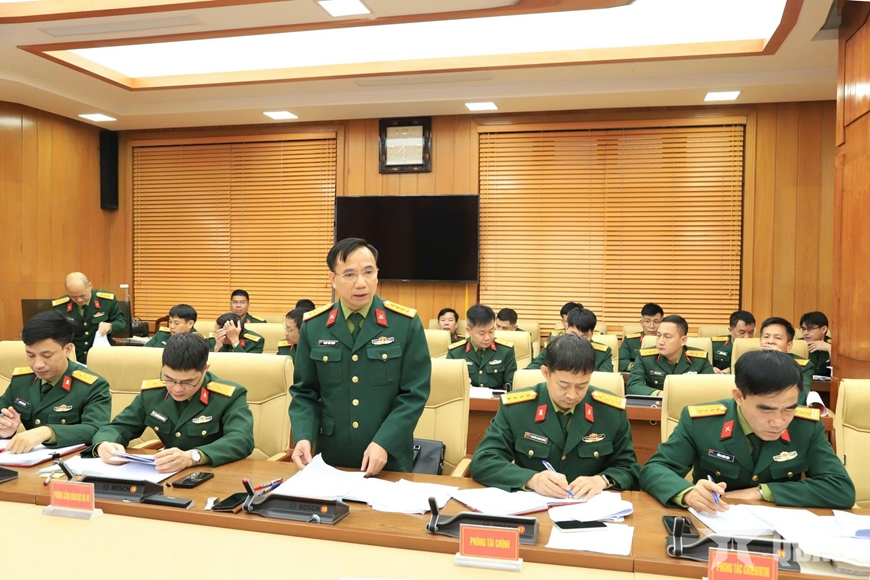 | Đại biểu Cục Hậu cần-Kỹ thuật thông qua báo cáo trung tâm công tác xăng dầu năm 2025 của các đơn vị trong Tổng cục. |