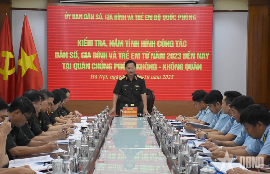 Phát biểu kết luận buổi làm việc, Thiếu tướng Trần Công Trường yêu cầu, Ban DS,GĐ&TE Quân chủng tiếp tục đẩy mạnh các hoạt động truyền thông DS,GĐ&TE để nâng cao nhận thức, chuyển đổi hành vi của cán bộ, nhân viên, chiến sĩ trong toàn quân chủng, thực hiện tốt các mục tiêu, chỉ tiêu, nhiệm vụ công tác DS,GĐ&TE đáp ứng yêu cầu nhiệm vụ trong tình hình mới.