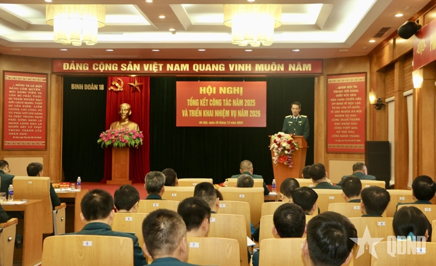Báo cáo tổng kết tại hội nghị khẳng định, trong năm 2025, Binh đoàn 18 đã tham mưu, đề xuất với Quân ủy Trung ương, thủ trưởng Bộ Quốc phòng về thực hiện nhiệm vụ quốc phòng kết hợp với kinh tế, kinh tế với quốc phòng và các nhiệm vụ khác được giao; rà soát, điều chỉnh, bổ sung hệ thống văn kiện sẵn sàng chiến đấu theo điều lệ công tác tham mưu, tác chiến; xây dựng mệnh lệnh công tác quân sự, quốc phòng, kế hoạch thực hiện nhiệm vụ quân sự, quốc phòng…